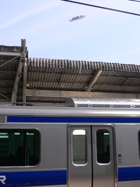 広告用の飛空挺飛行船が飛んでいました